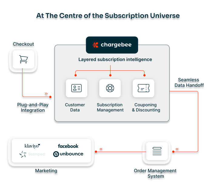 Chargebee keeps up with an evolving product roadmap, integrates with third-party or in-house tools with minimal developer support, provides white-gloved onboarding, and takes care of subscription upkeep on its own.