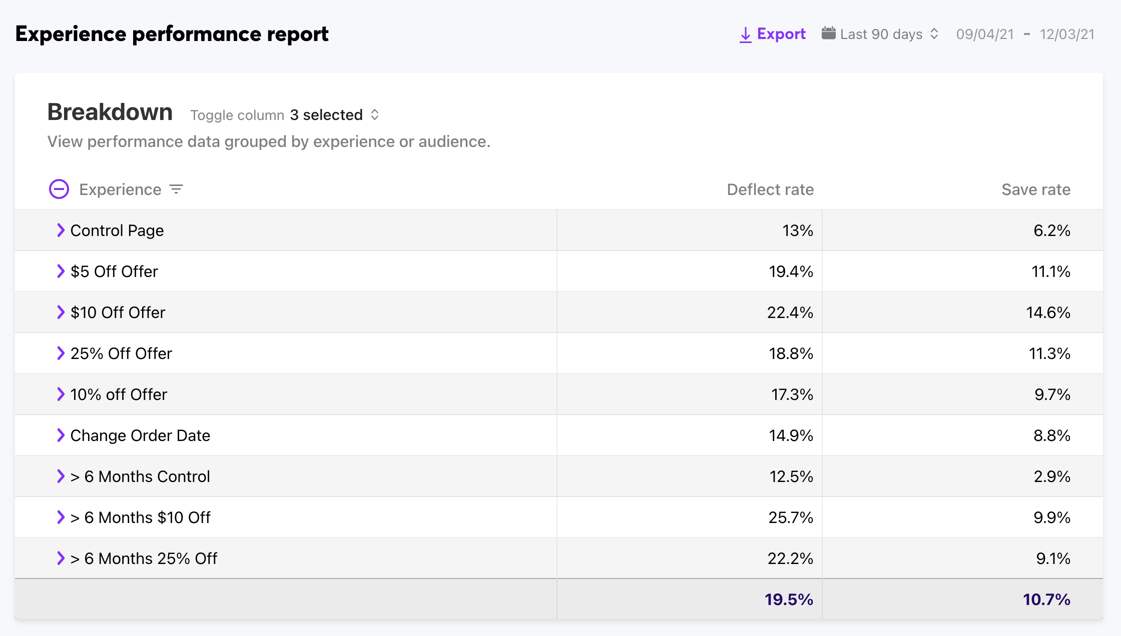 Any customer who had been a subscriber for more than six months was given a higher discount offer. As a result, Vital Proteins doubled the save rate for customers with strong recurring purchase intent and kept them on the program.