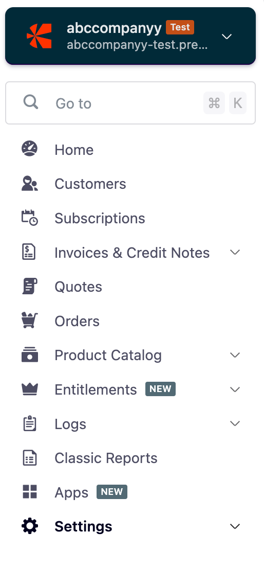 To use this tool, you must have the Live site enabled for your Chargebee Test site. Click Settings > Configure Chargebee > Transfer Configurations .