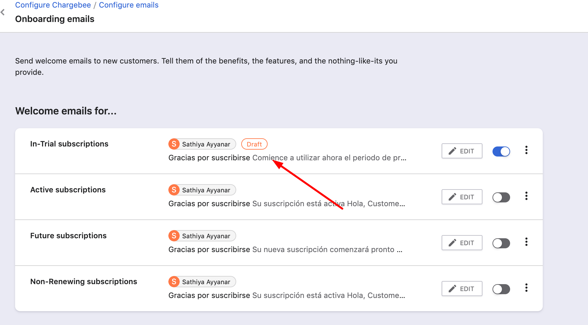 If you are looking at sending an email when the trial begins then go to Configure Chargebee >Email notification > Onboarding emails and set up 'In-Trial subscriptions' email notification.