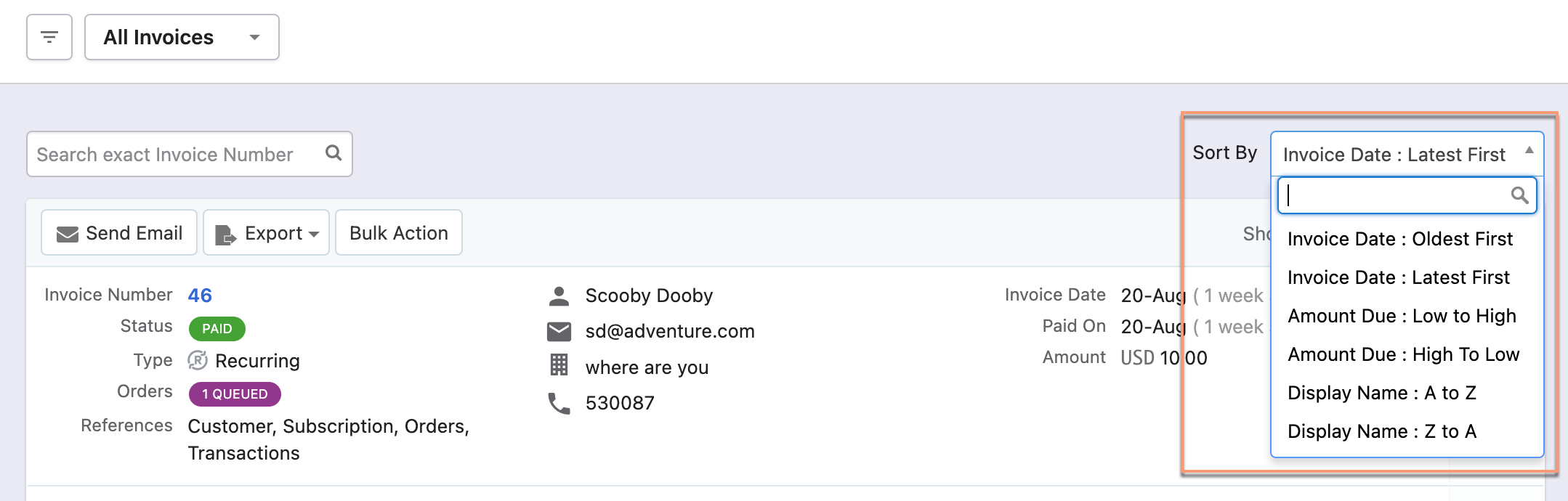 Click the column name or the arrow beside the column name to sort the column in ascending or descending order. Also, use **Sort By** drop-down options to sort the entries.