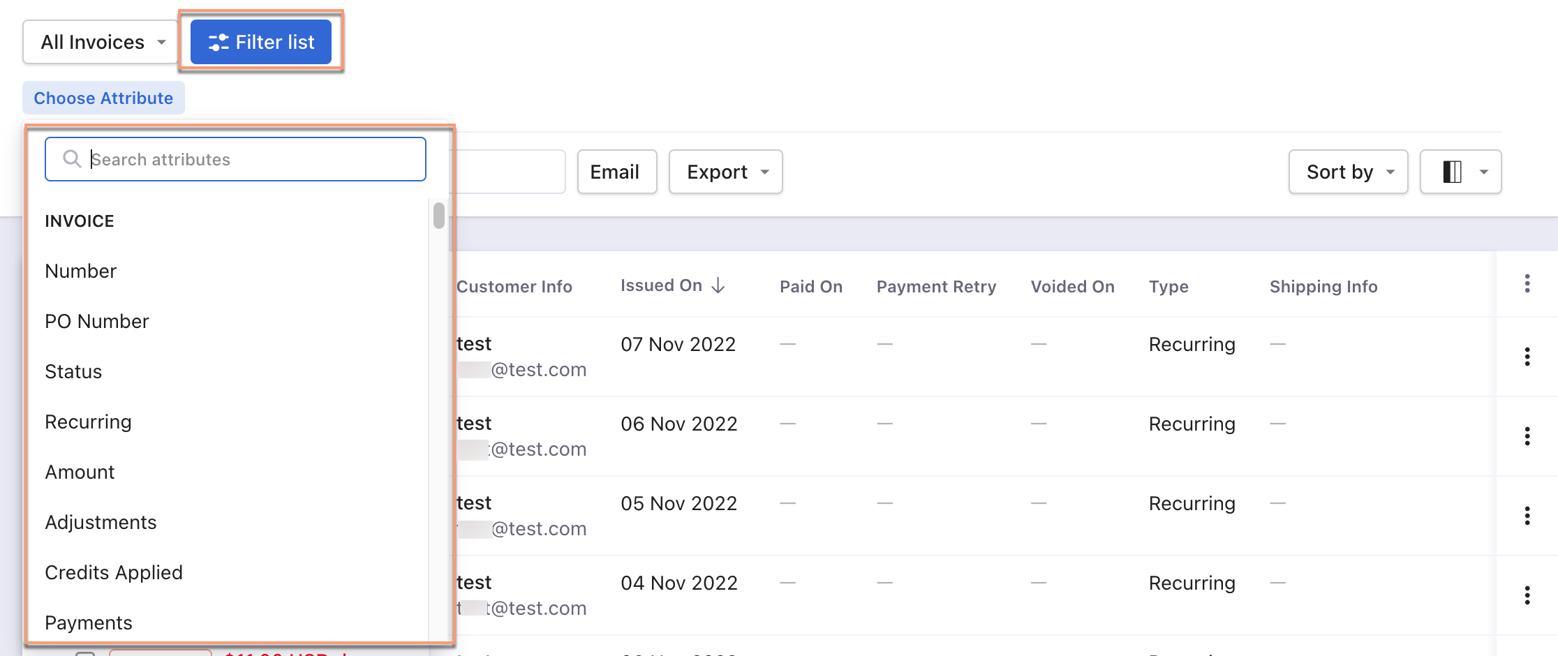 1. Click on the Filter list.