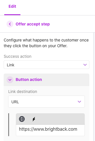 Next, you will need to determine what happens to your user when they hit the button on your offer, which you can do in the Offer accept state tab.