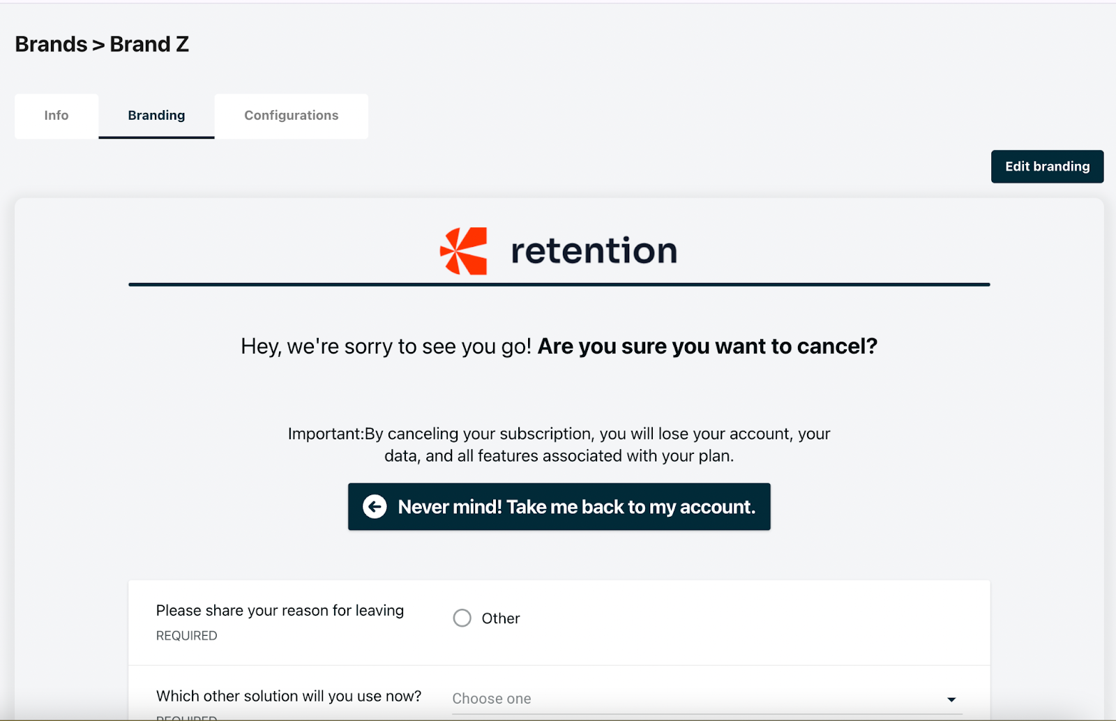 Compliance with branding guidelines - Customers can stay compliant with their organization's branding guidelines and provide their customers a personalized cancellation experience unique to each brand.