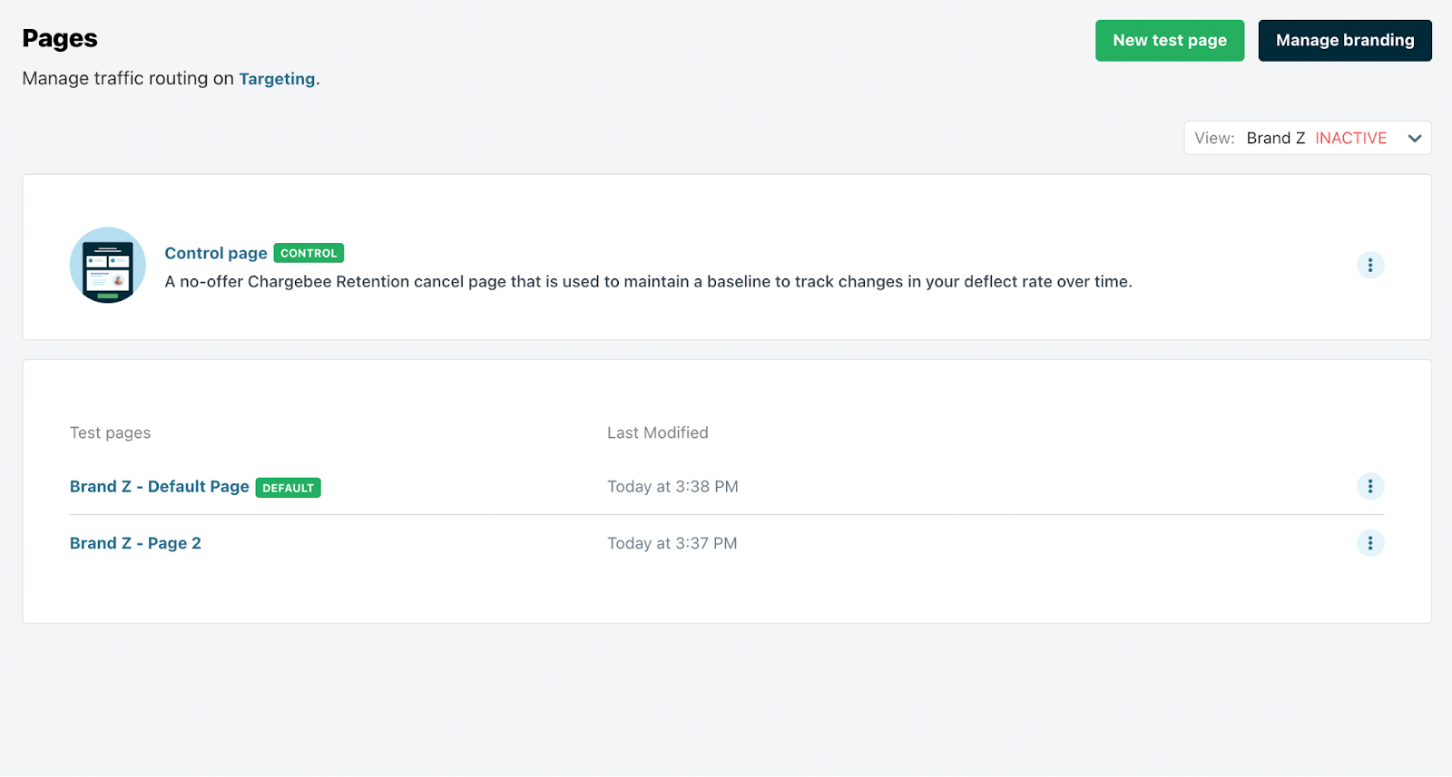 In addition to specifying brand specific pages, you can also set up brand specific targeting rules specifically for each brand. The brand specific targeting rules, get executed post the audience segment rules configured at the brand level successfully resolves the brand. These targeting rules help to slot the subscriber within the right section of the cancellation funnel and show them the right cancellation experience. The targeting rules configured within one brand do not interfere or impact the targeting rules configured in the other brand. Please note that only the pages specific to the selected brand will be available for selection purposes within the targeting section, other pages will not be visible from the front end. To know how to setup targeting in retention, refer to the section.