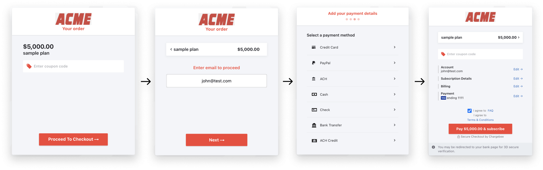 When a customer wants to subscribe to your product, collect their payment method as a part of the checkout flow. Come renewal time, the saved payment methods can be charged instead of following up with the customer for updating their card information.
