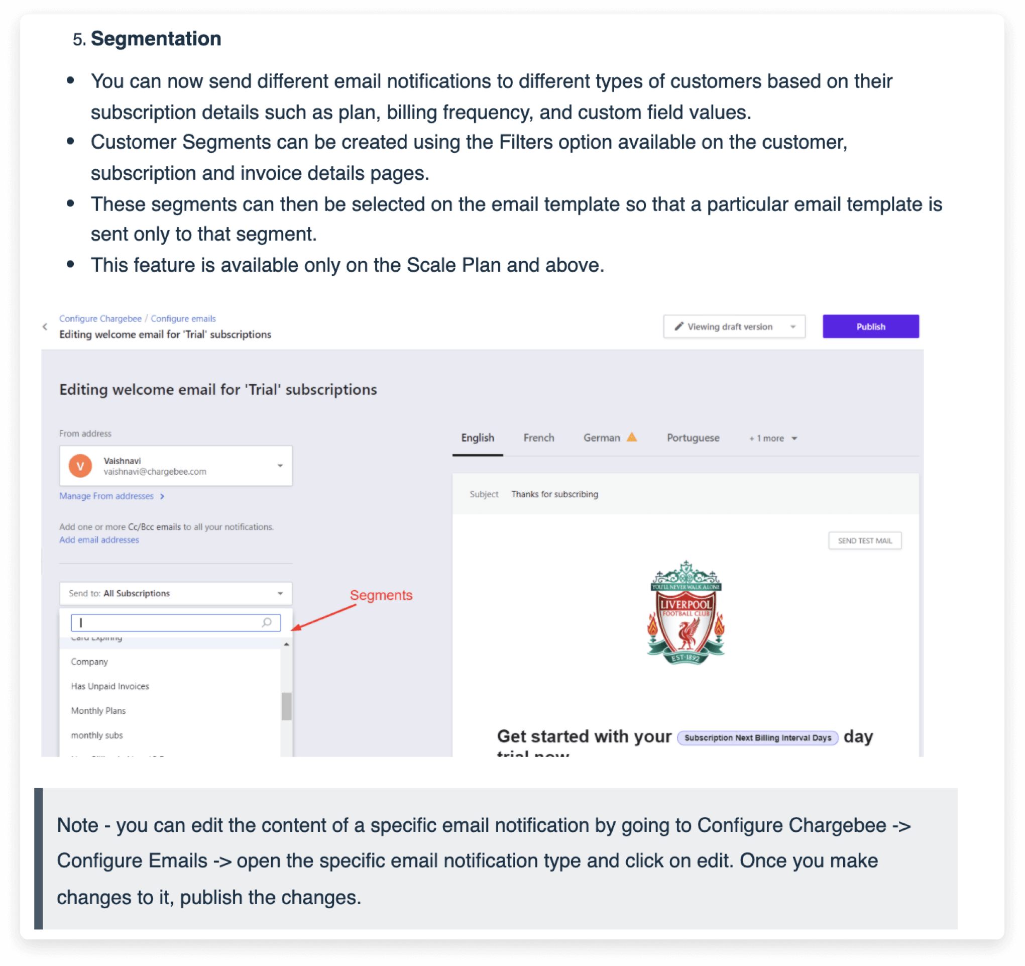 Some high value customers may not respond as positively to dunning. If that's the case, using Customer Segmentation to exclude particular customer segments from regular dunning and set up separate, more tailored emails for them.