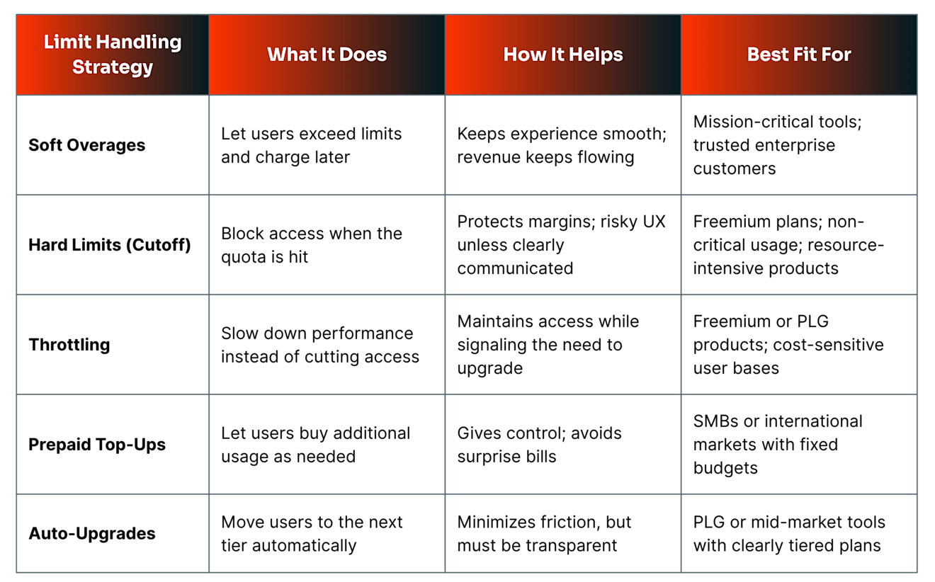 • When to use: Best for PLG or sales-led motions where customers value predictability but need flexibility to grow without committing to a full-tier upgrade.