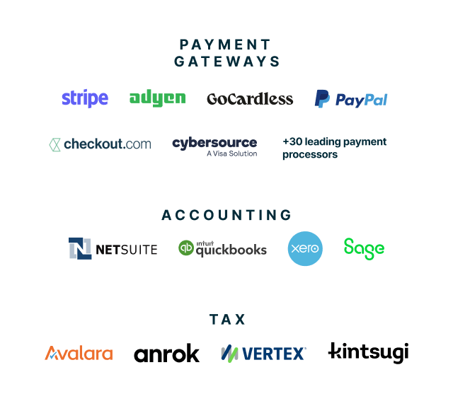 Integrations that match the real-world complexity of multi-jurisdiction taxes, GL mappings, and global payment processing
