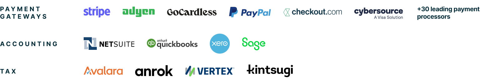 Integrations that match the real-world complexity of multi-jurisdiction taxes, GL mappings, and global payment processing