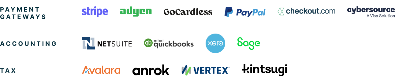 Integrations that match the real-world complexity of multi-jurisdiction taxes, GL mappings, and global payment processing