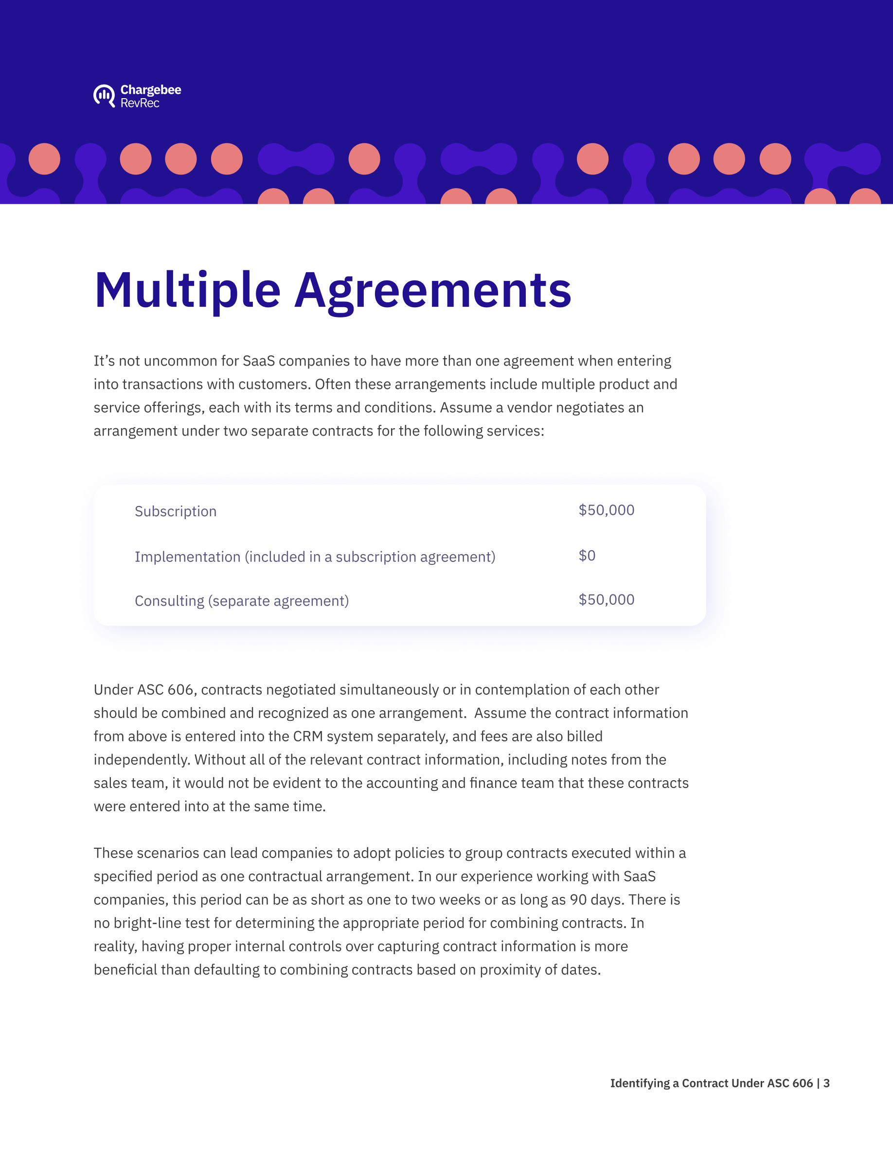 - How to manage multiple agreements, with multiple product and service offerings, under ASC 606.
