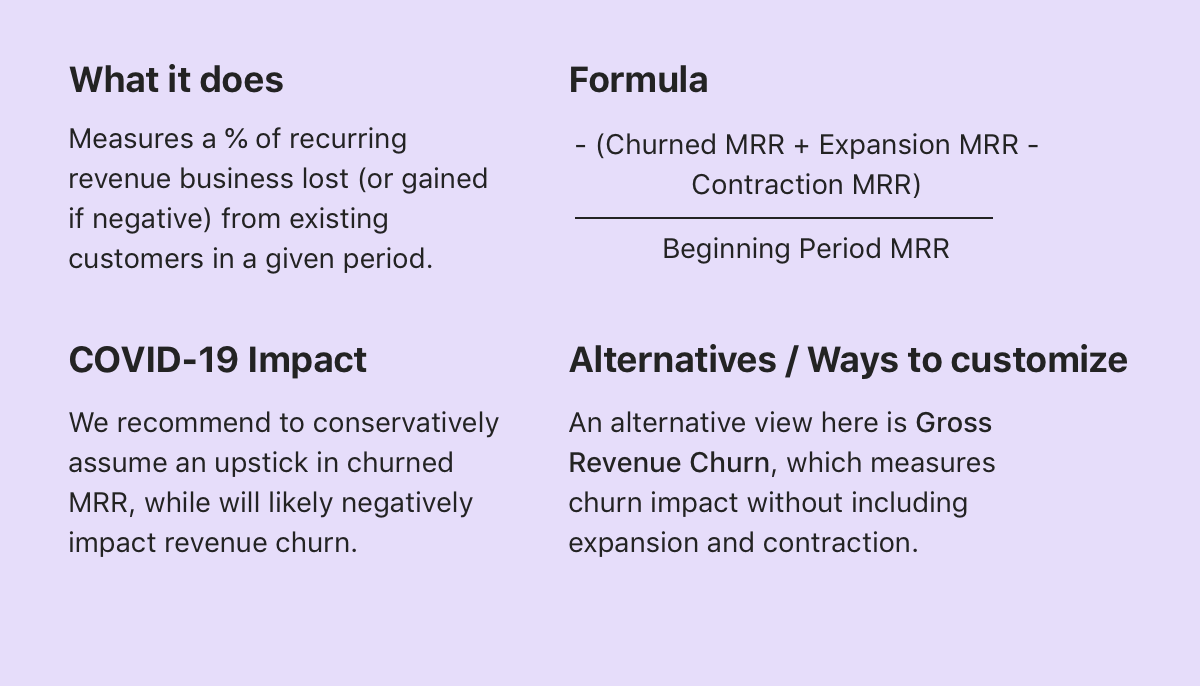 WC: When talking about churn, I would like to classify it as net and gross revenue churn. Gross revenue churn is the churn you're going to have a hard time avoiding. But in net revenue churn, you have to factor in the expansion and contraction on how you can uplift and improve your revenue based with your existing customers.