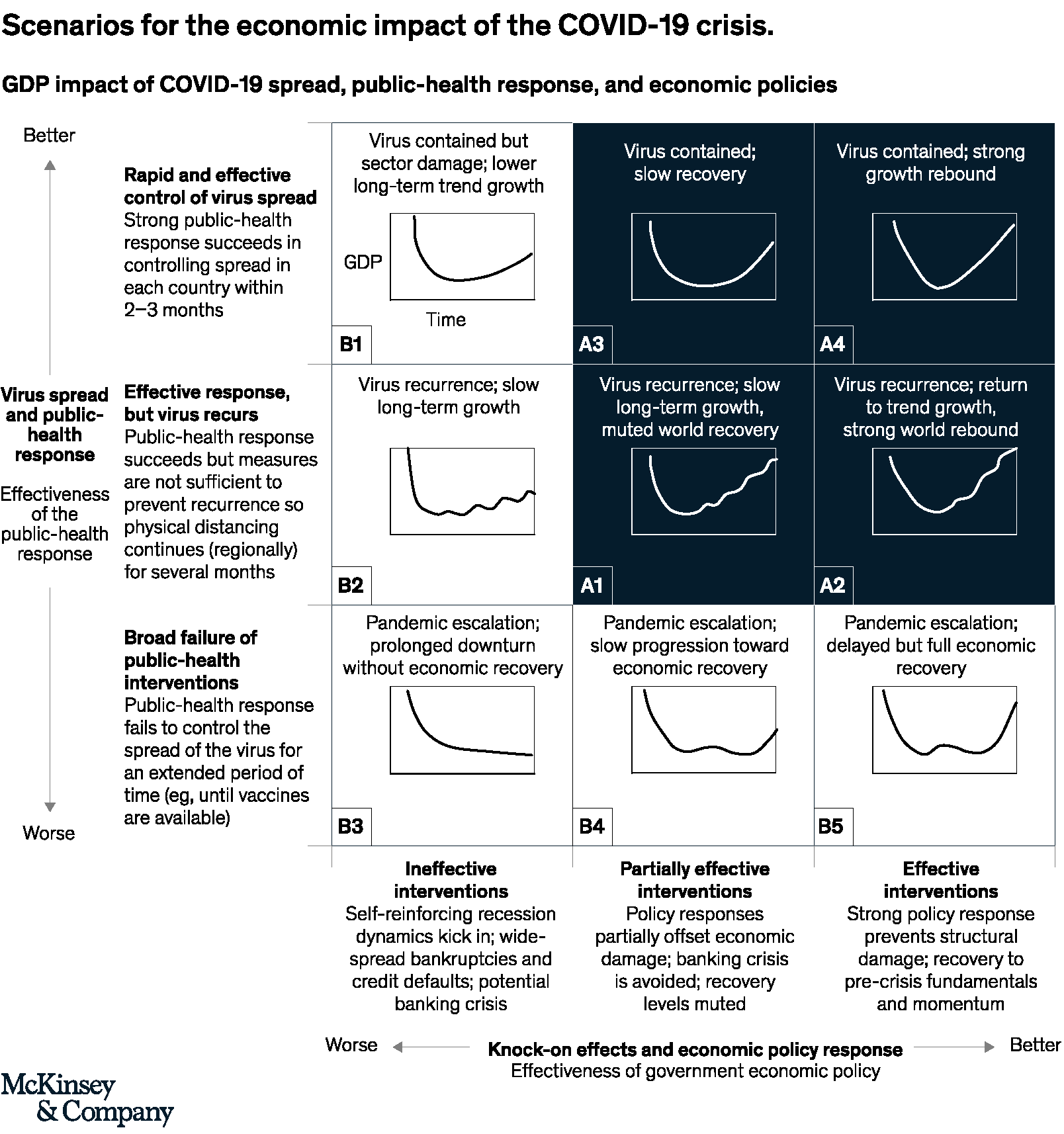 KS: There are three different recovery scenarios we should be looking at. For those of you who're not familiar, the first recovery is V-shaped. This means you'll probably see a dip in your Q2 revenue, but by Q3, you'll be in a position to recover. The next is a W-shaped recovery. In this, you'll be seeing a dip in your Q2 revenue and will be anticipating a recovery in Q4.