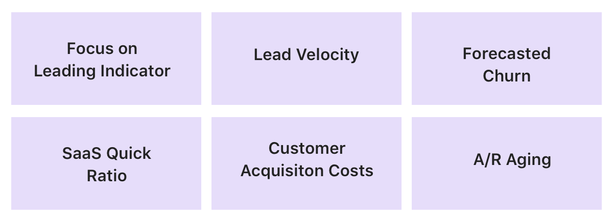 BM: Focus on indicators that give you an advance warning of what's going to happen to your business. If your GTM model is inbound traffic, you'll know as traffic declines in your trial sign-ups, etc. If you have the outbound model, then you might not be getting leads coming in, which is a leading indicator for your pipeline failure.