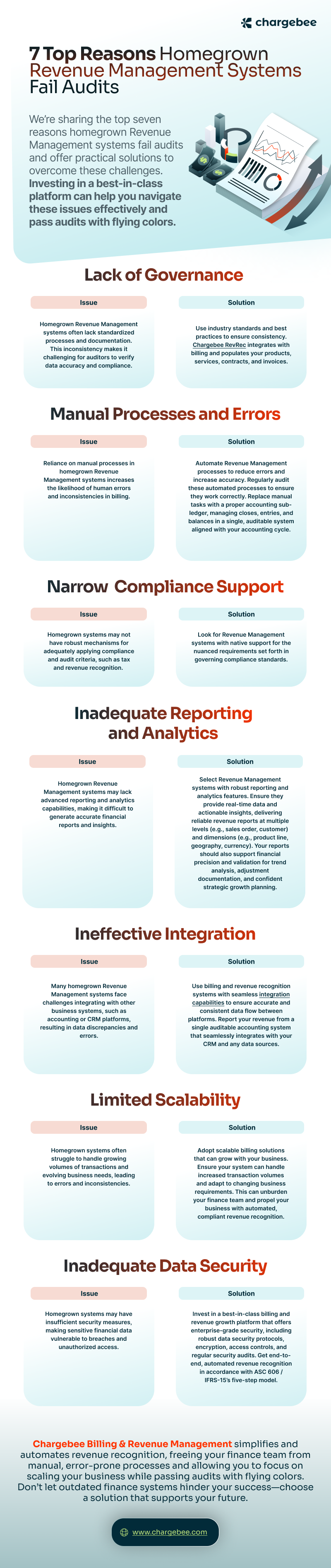 We're sharing the top seven reasons homegrown Revenue Management systems fail audits and offer practical solutions to overcome these challenges. Investing in a best-in-class platform can help you navigate these issues effectively and pass audits with flying colors.