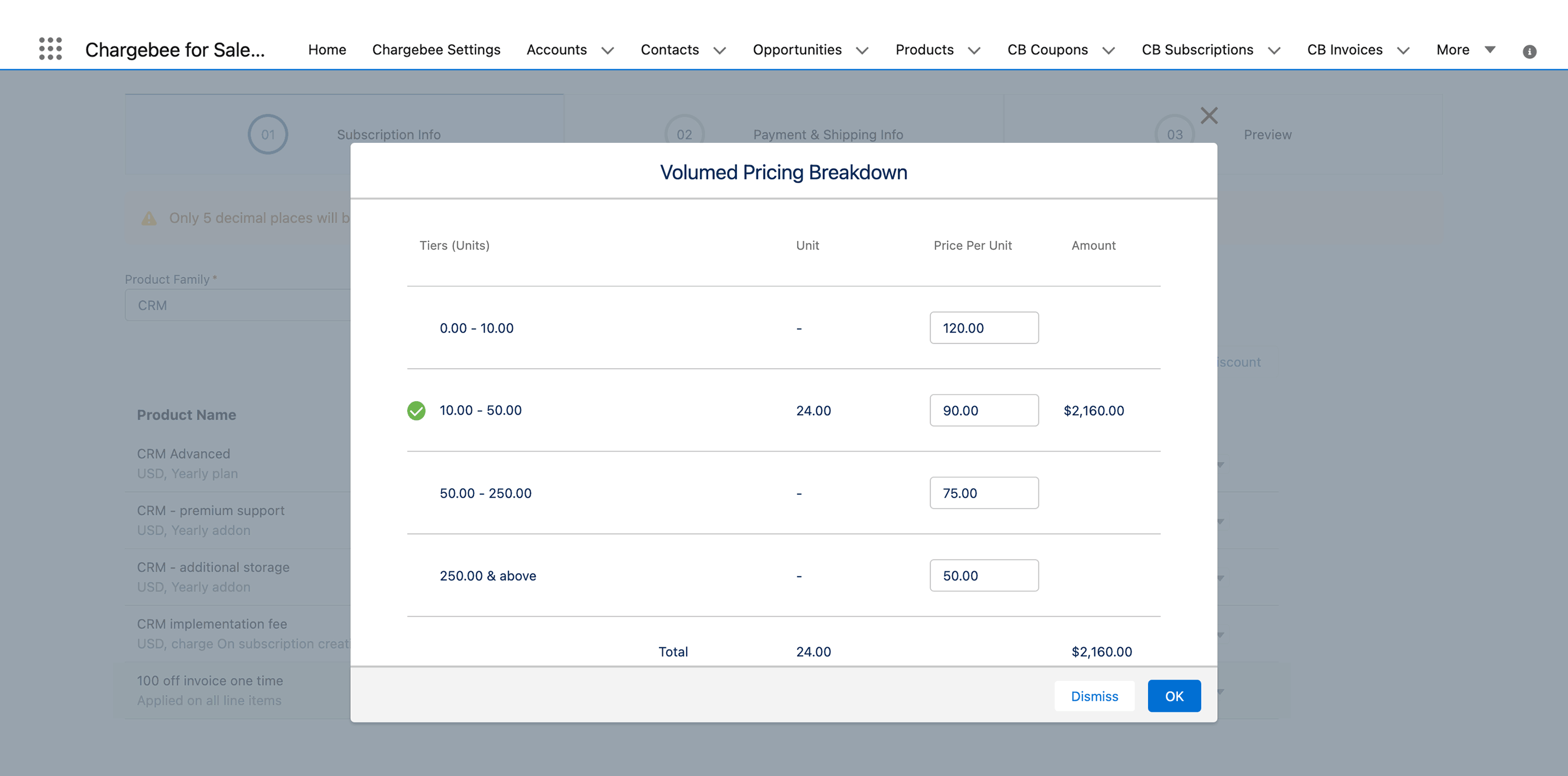 Chargebee supports a variety of pricing and discounting models suitable for different businesses and verticals: flat recurring fees, volume, tiered, consumption based and several more. Discounts can be limited to a specific duration or applied over the entire contract term. All of this, combined with the ability to bill at multiple frequencies allows your Sales teams all the flexibility needed for servicing complex contracts