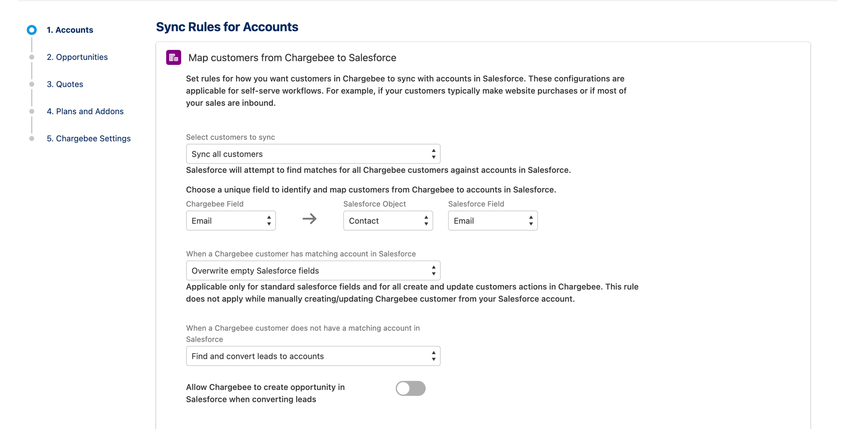 The Chargebee-Salesforce integration makes your life easier, irrespective of the sales model you're using. For a sales-driven model, create or update subscriptions directly from a Salesforce opportunity ease. For a self-serve model, allow Chargebee to sync customers, subscriptions, opportunities, invoices and more into Salesforce through flexible configurations. And for a hybrid sales model, use powerful matching logic that eliminates duplicate inbound leads in Chargebee and Salesforce.
