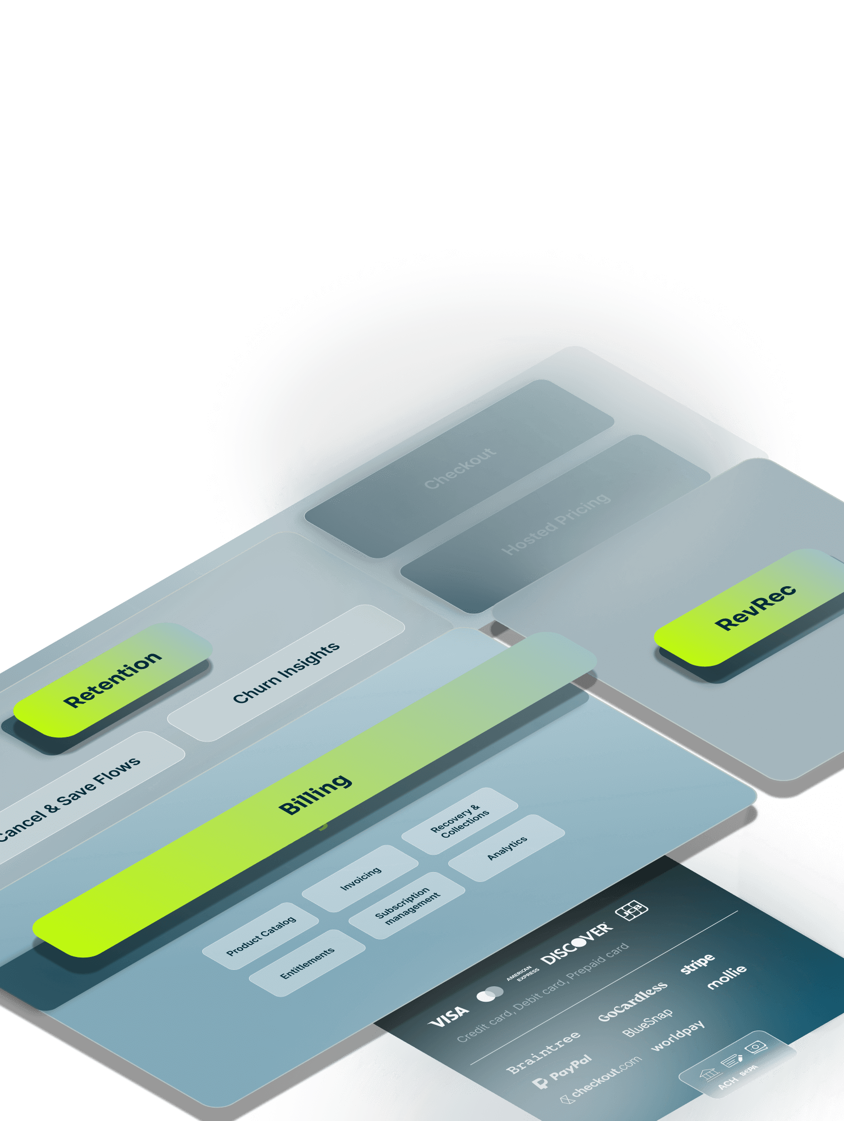 Don't let payment gateway limitations hold you back — Upgrade your revenue stack without any developer resources. Unlock comprehensive billing, revrec, retention, and centralized reporting on top of Stripe and 30+ payment gateways.