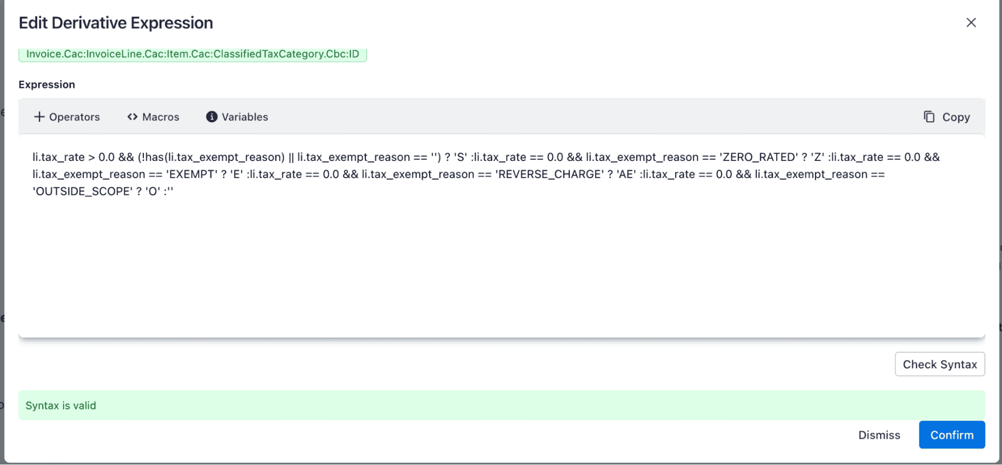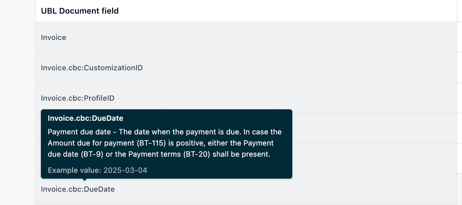 For example, a business-level “Accepted” selection may be transformed into a specific PEPPOL response code through the derivative expression configured in Field Mapping.