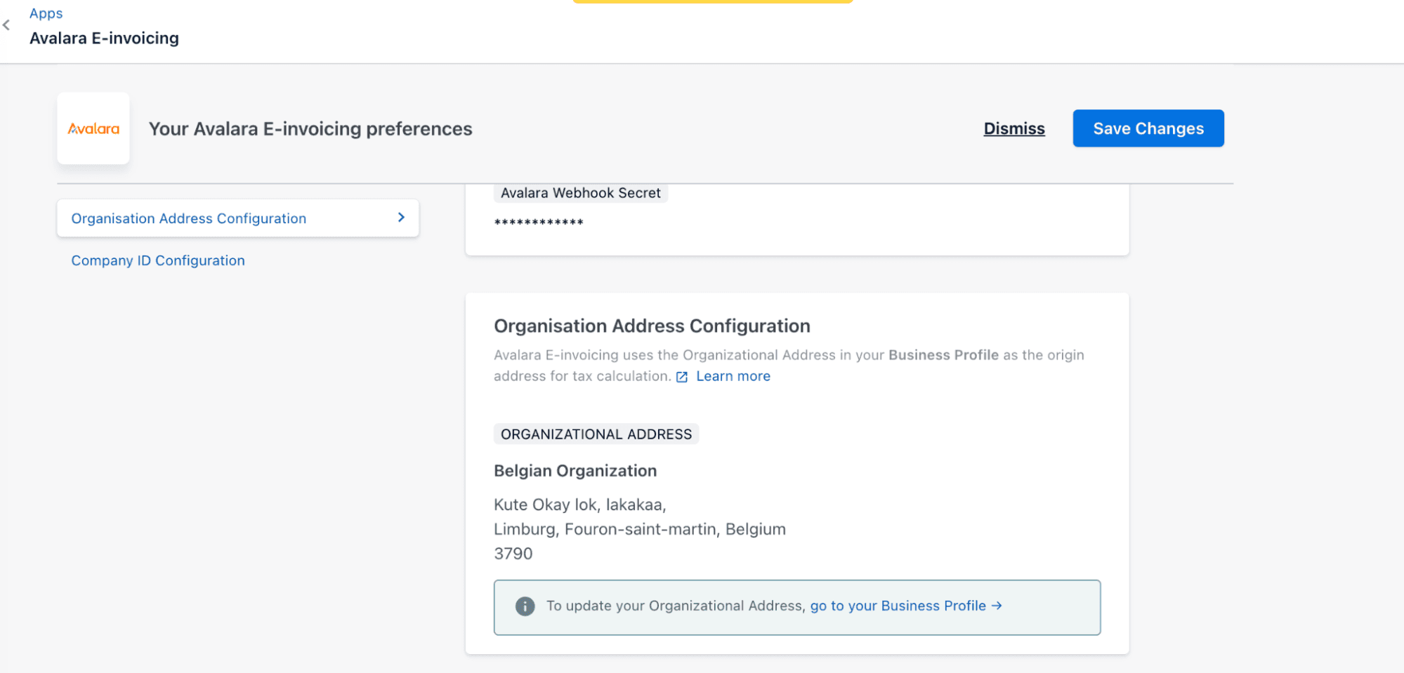 Avalara Webhook Secret