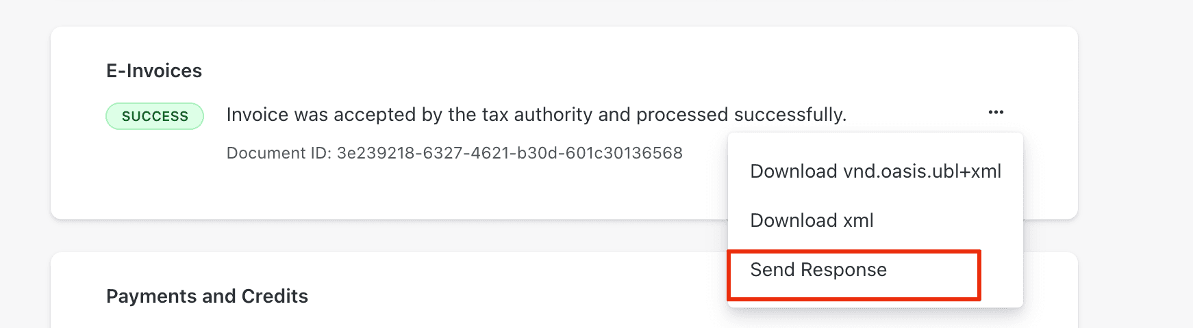 The invoice record will reflect successful compliance.