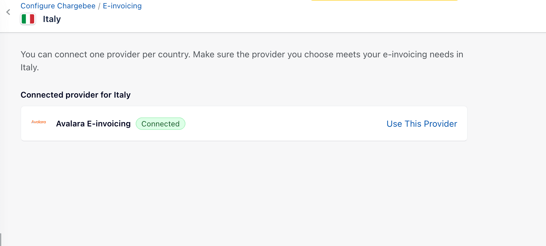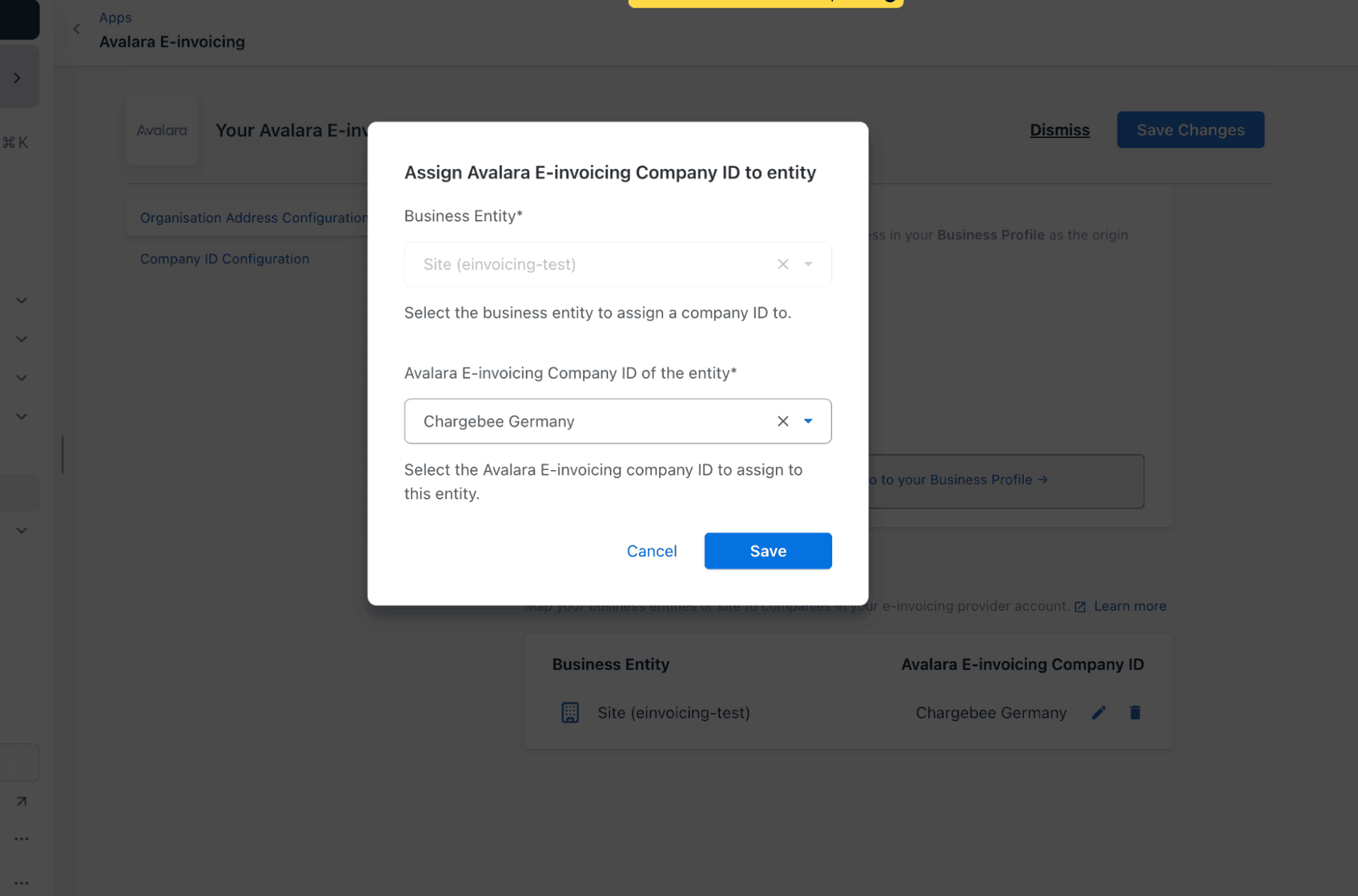 Each Chargebee entity must map to one Avalara Company.